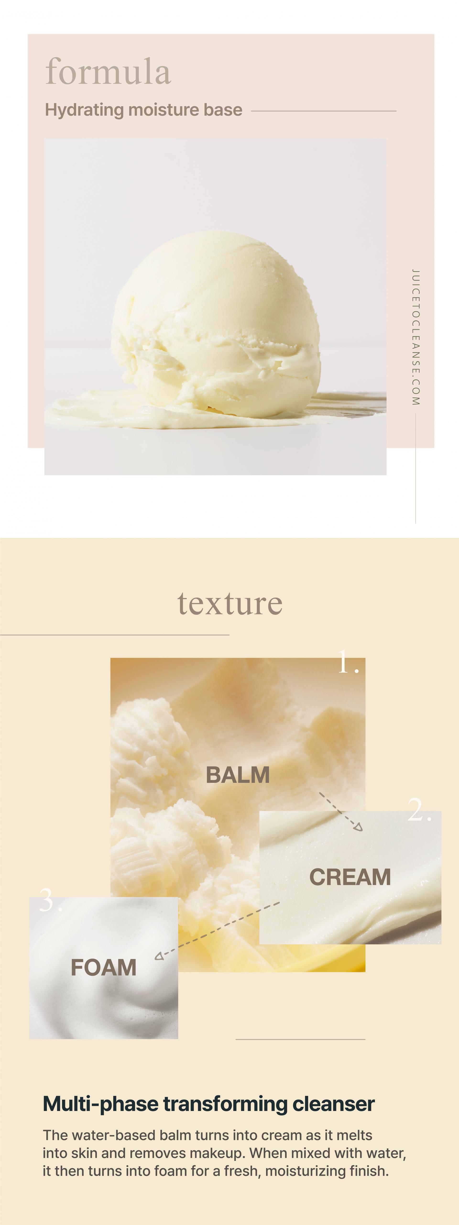 A watery cleansing balm thatt gently melts away makeup and dust on skin, leaving the skin hydrated and sily smooth.