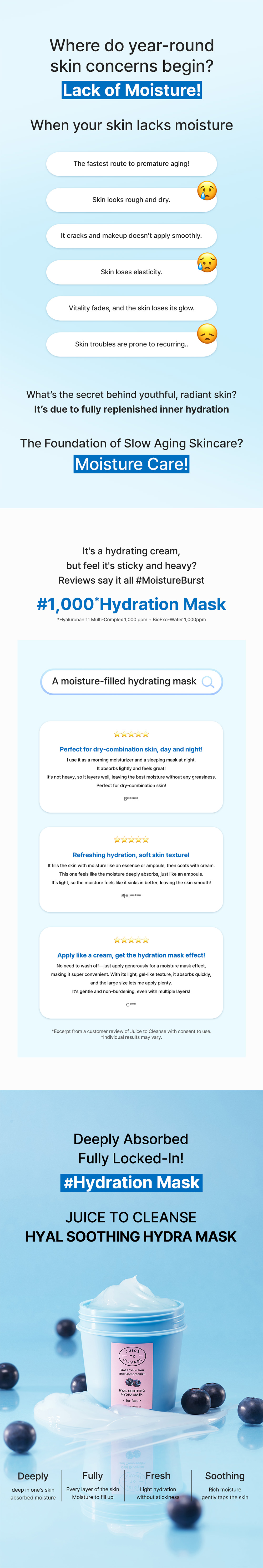 A hydration cream mask infused with hyaluronic acid and juicy pure, providing moisture care for healthy skin.